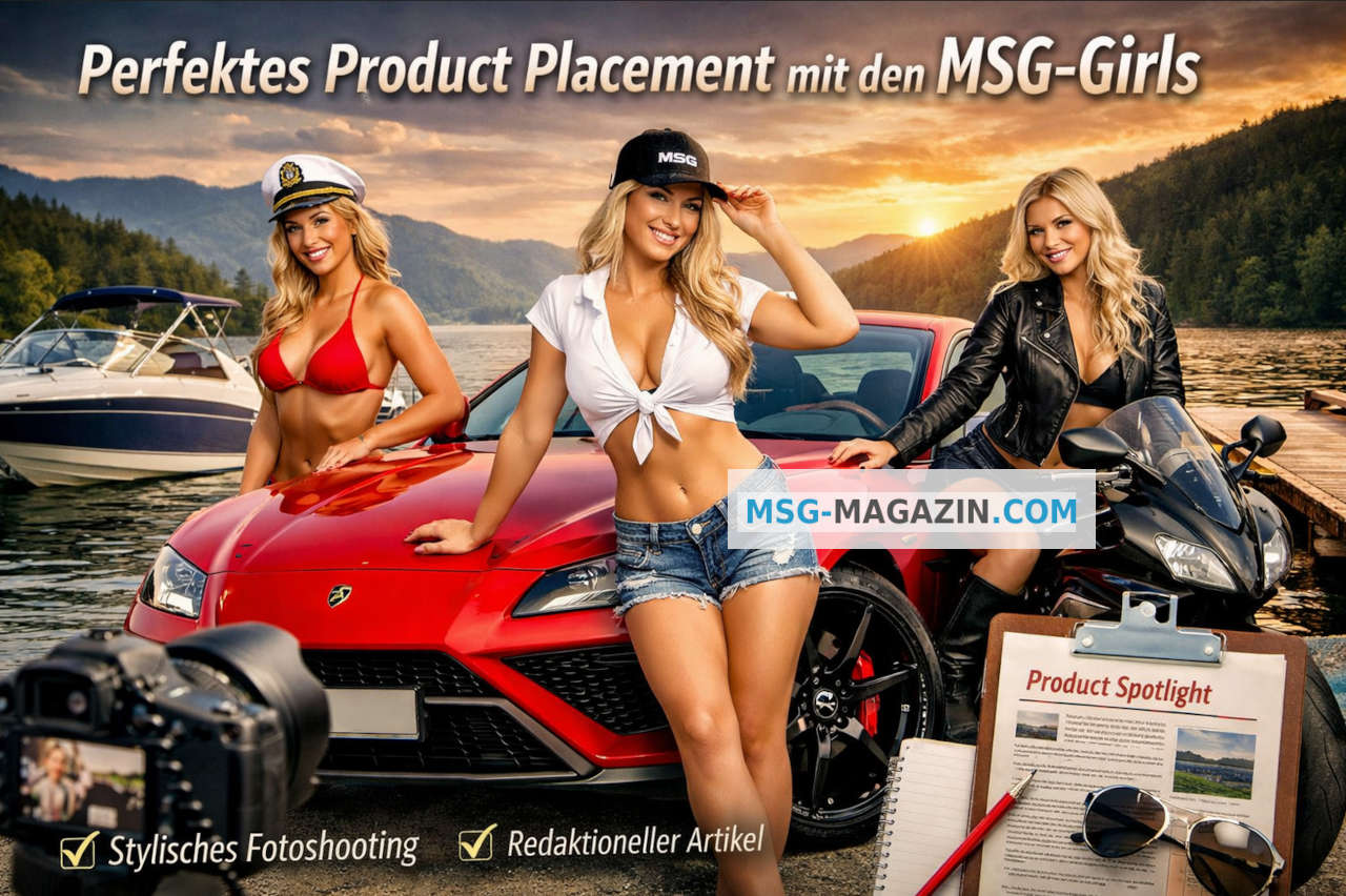 Die MSG Girls Kategorie eignet sich unter anderem sehr gut zum Product-Placement von Fahrzeugen und Zubehör. Wir shooten mit unseren MSG-Girls das Foto Set und unsere Redaktion bereitet einen redaktionellen Artikel über Ihr Produkt vor. Natürlich können Sie auch einen selbst erstellten Text übermitteln. Die Foto Serie wird mit dem Text und Link mit Follow-Attribut in der Kategorie MSG-Girls veröffentlicht und erreicht damit besonders viele Besucher.